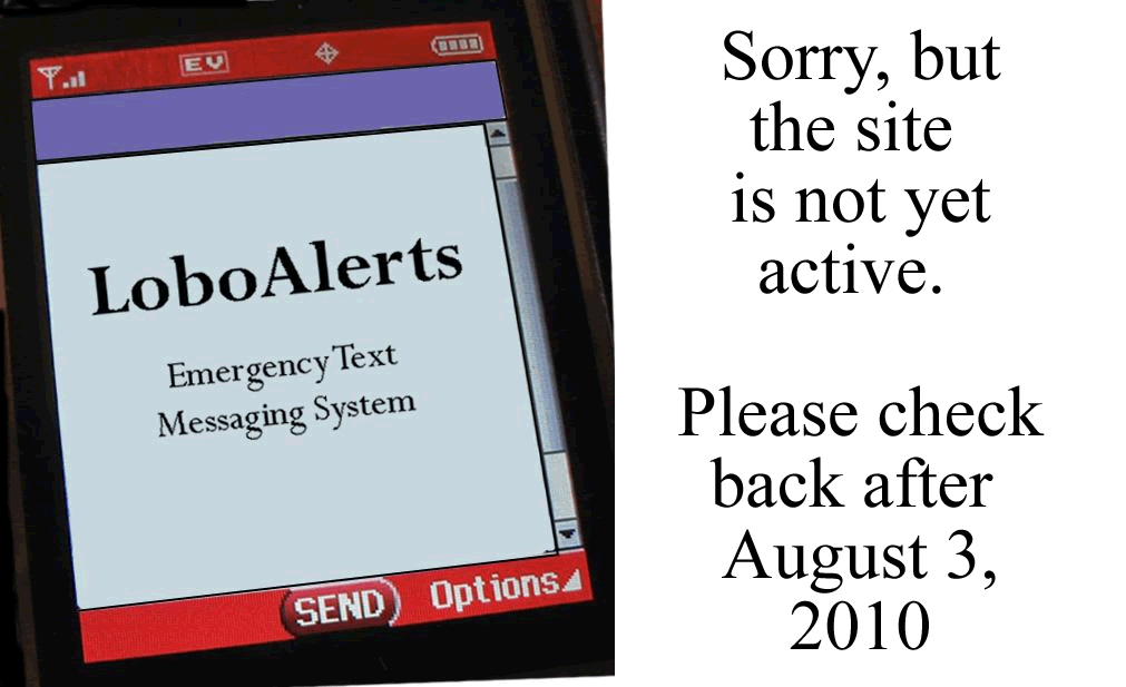 The new text messaging system is called LoboAlerts and is a partnership between the University and Rave Wireless, Inc. All persons with active records and cellular telephone numbers in the Banner system will be enrolled in the system automatically. Persons with active records who do not have cell phone numbers listed in Banner will be contacted via email to remind them to update their profile. We encourage you to login to the LoboAlerts website (http://loboalerts.unm.edu) to confirm your contact information. Please note that your cellular phone provider may charge a per-text message fee for the delivery of emergency notifications to your phone.